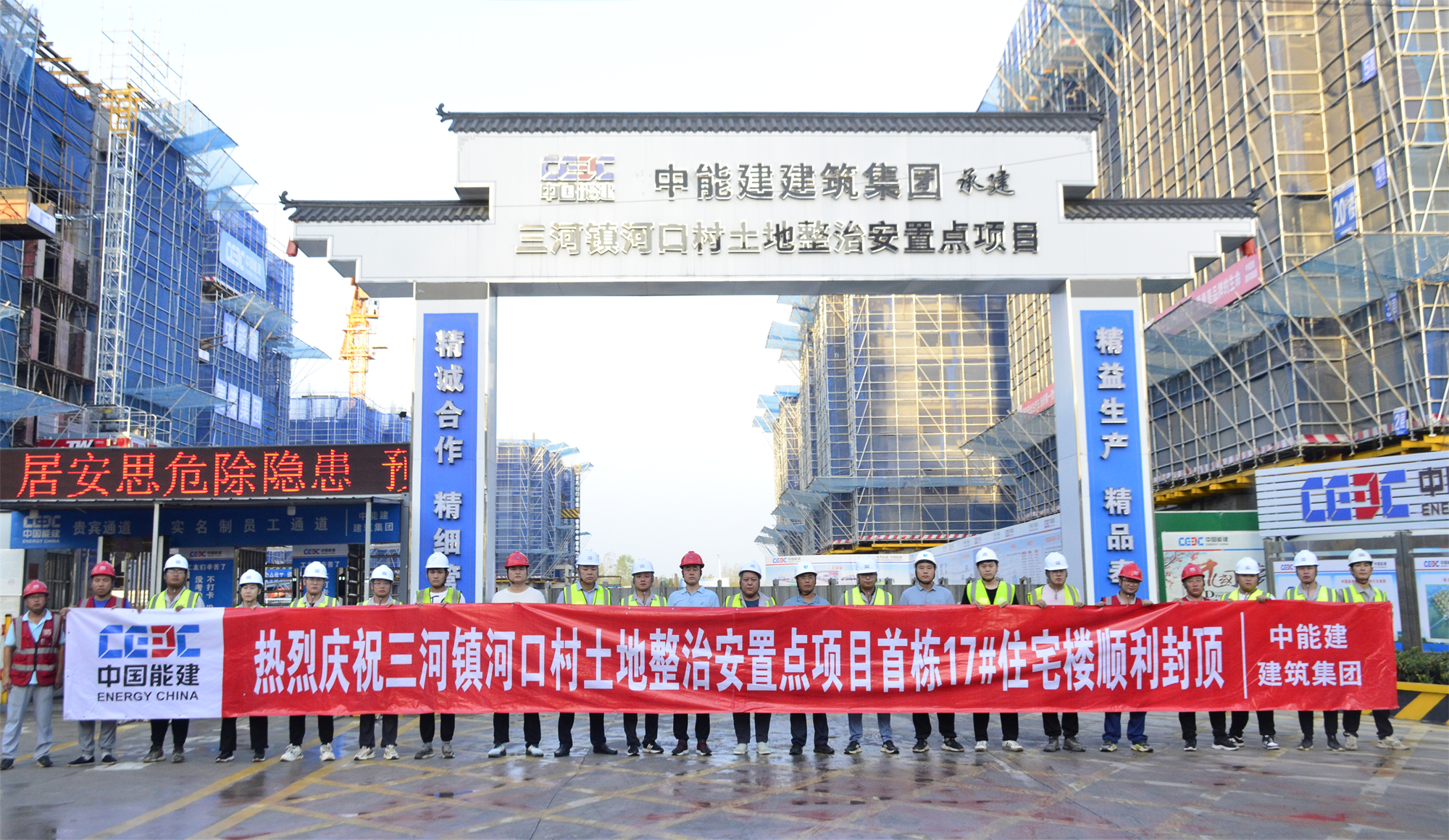 8月23日06点06分,中能建建筑集团承建的三河镇河口村土地整治安置点项目17号住宅楼顶层浇筑首方混凝土,标志着该项目首栋住宅楼结构顺利封顶。