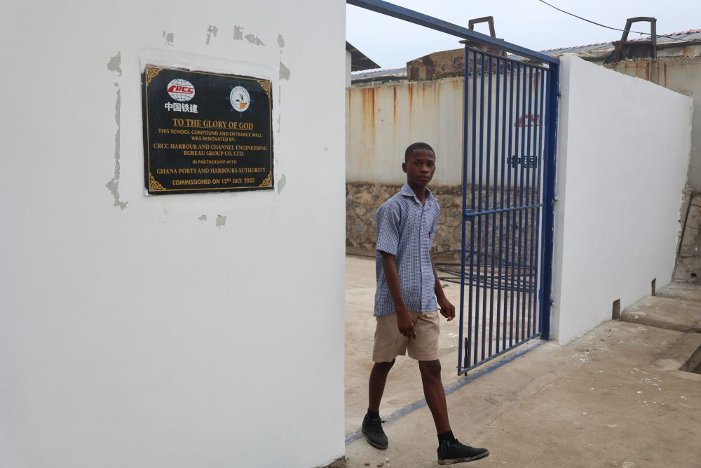 得知此事后,中国援建加纳渔港综合设施项目部投入大量人力“抢救”这所受灾小学。来自中国铁建港航局的施工团队在一个月左右的时间内,为学校清淤排污,修建排水管道、院墙并修整操场,使整个校园焕然一新。
