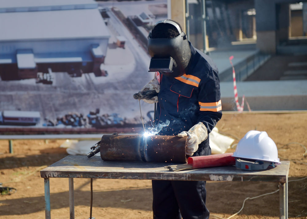 2023年8月15日,在博茨瓦纳莫舒帕,一名员工参加正太集团举办的员工技能大赛。新华社发(策基索·特巴洛摄)