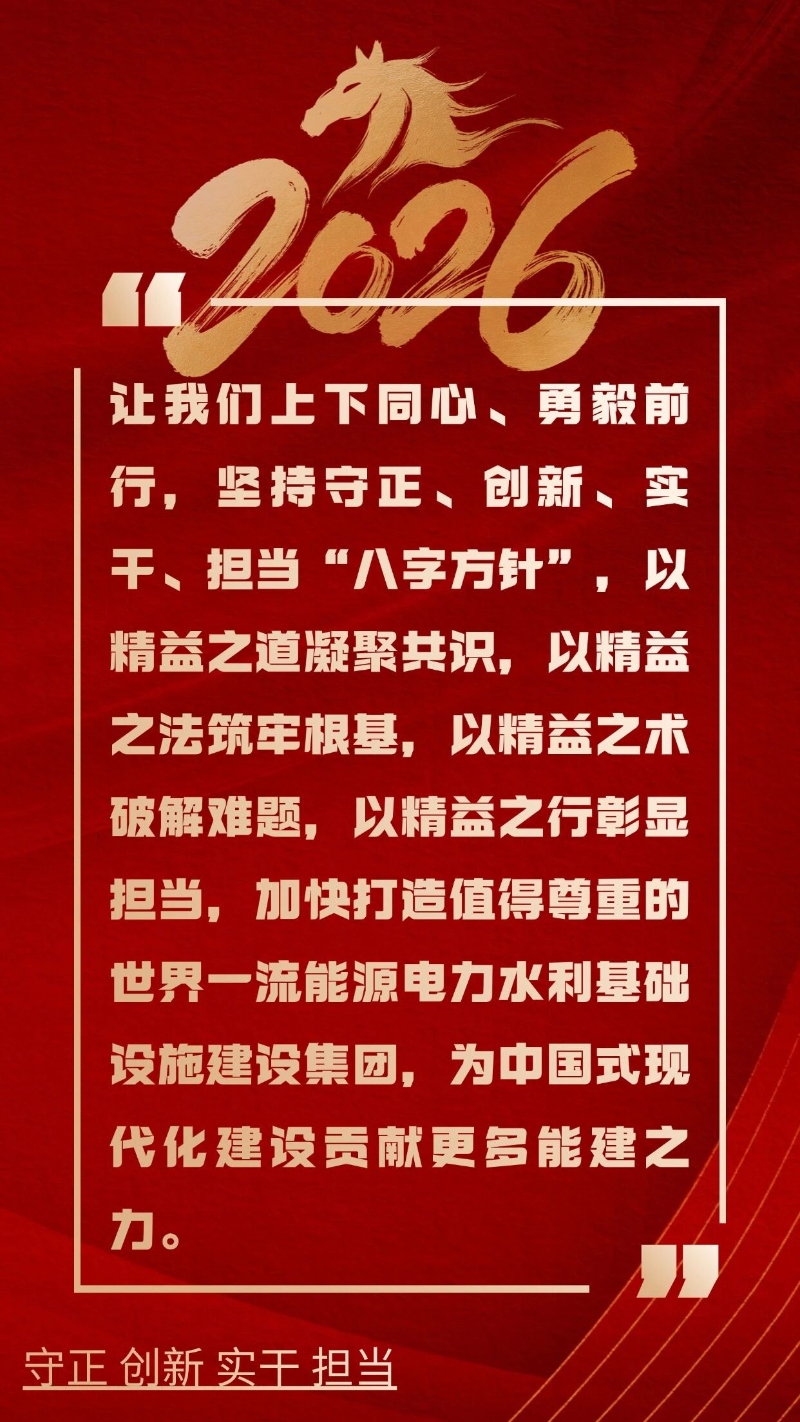 道法术行,四维联动。让我们上下同心、勇毅前行,坚持守正、创新、实干、担当“八字方针”,以精益之道凝聚共识,以精益之法筑牢根基,以精益之术破解难题,以精益之行彰显担当,加快打造值得尊重的世界一流能源电力水利基础设施建设集团,为中国式现代化建设贡献更多能建之力。