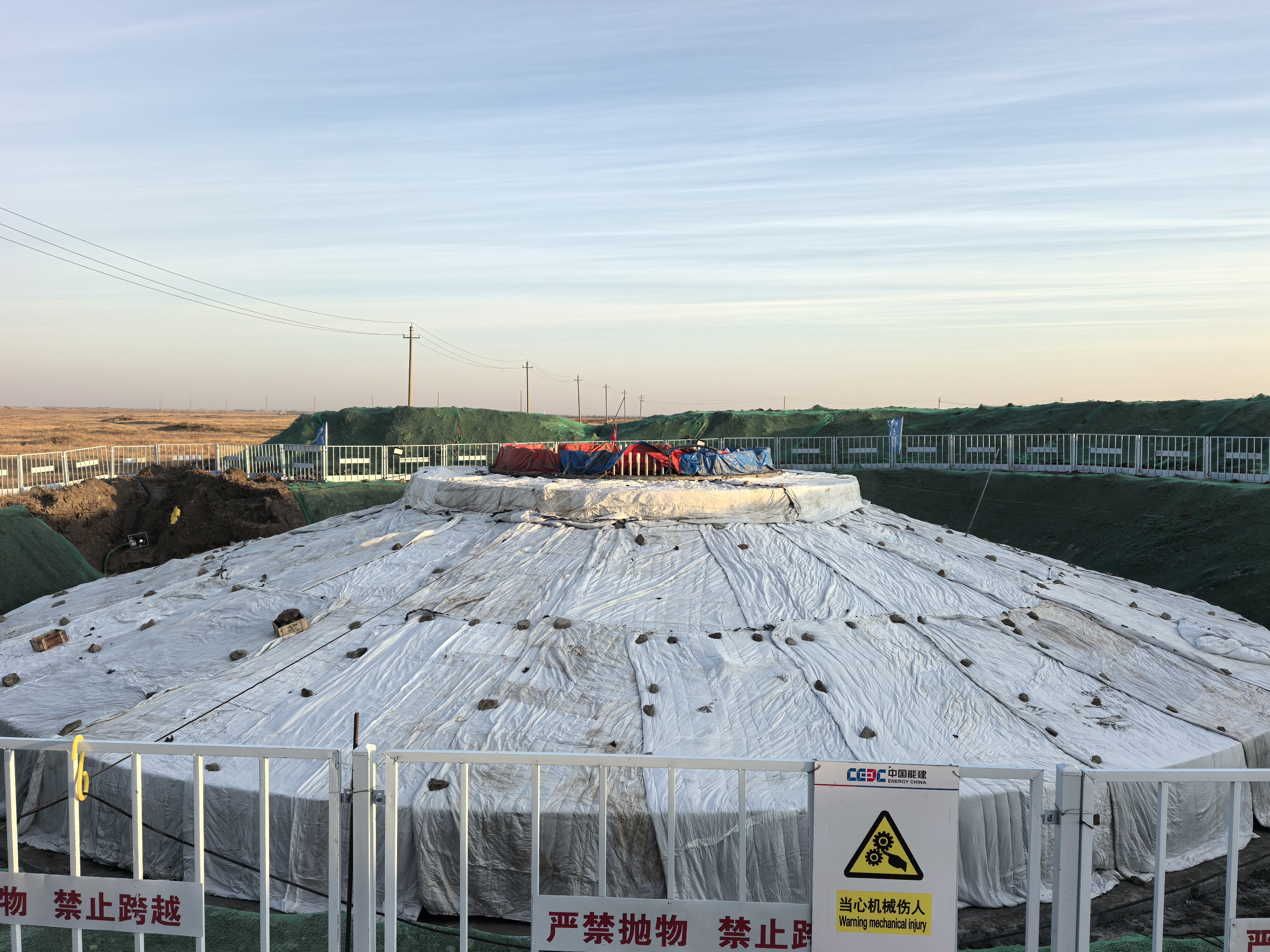 方案迅速落地。团队搭起保温棚,内用暖风炮供热,外层覆以保温棉被。建设者24小时轮班值守,每隔两小时精准测温、动态调节,像呵护幼苗般细致运维。就这样,一个源于生活的灵感,在严寒中生根,为工程注入了创新的温度。